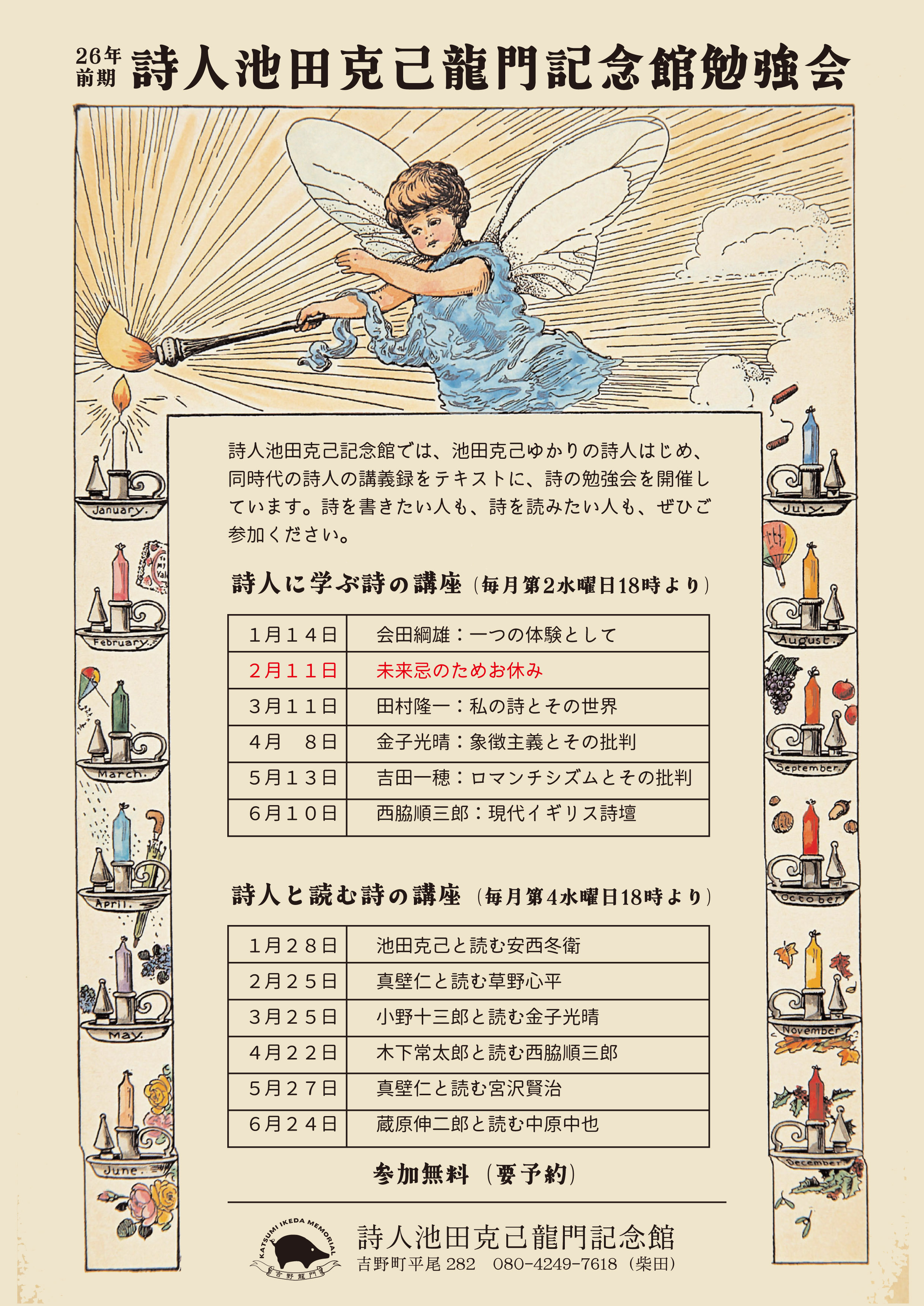 詩人池田克己龍門記念館での詩の勉強会来年上半期のスケジュールです。