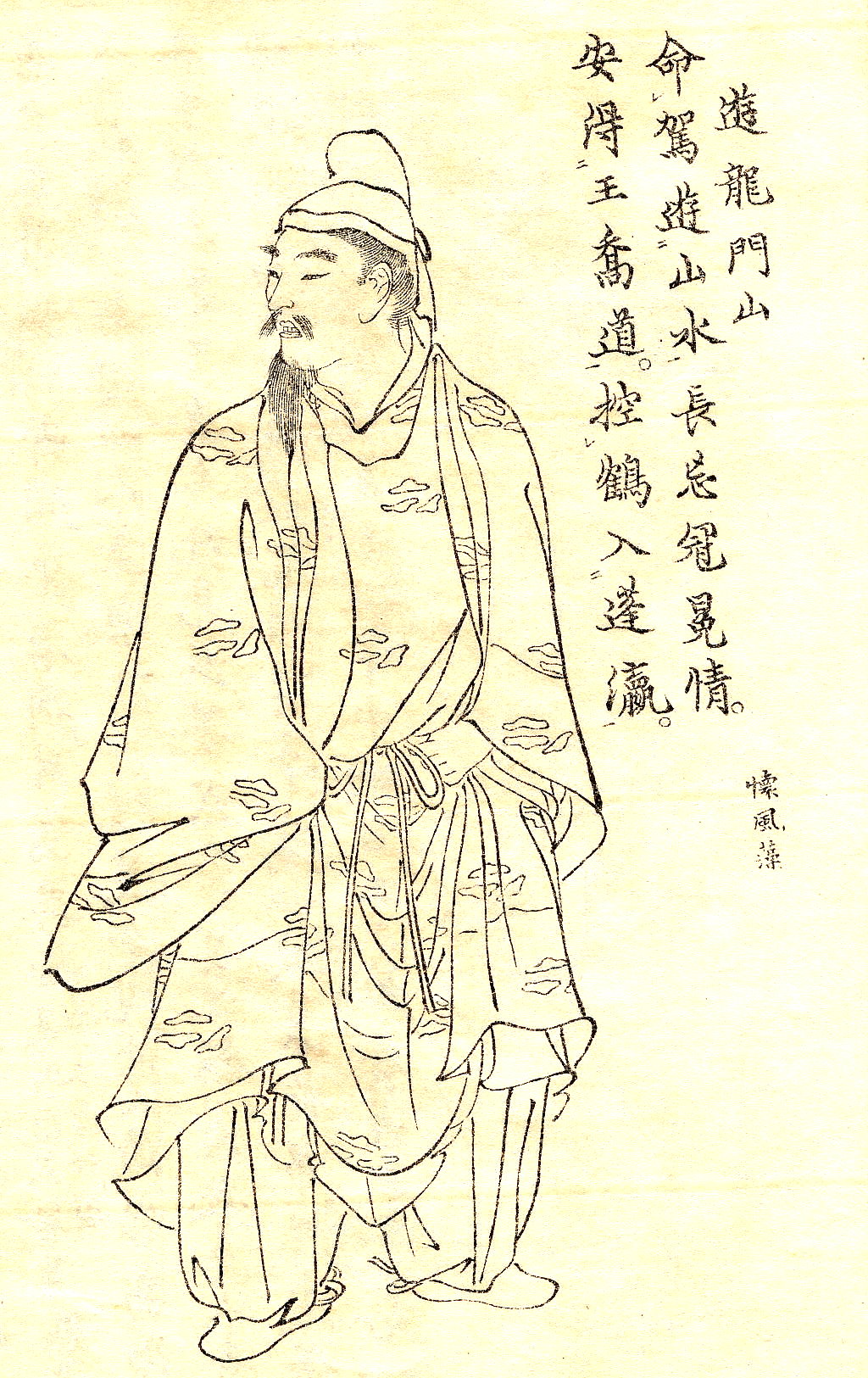 葛野王(かどののおう/かどののおおきみ)は、壬申の乱で天武天皇に敗れた弘文天皇(大友皇子)の第一皇子です。「龍門に遊ぶ」は現存する最古の日本漢詩集「懐風藻」に収録されています。
