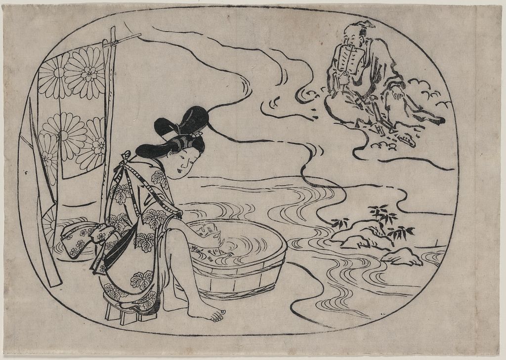 ある日、吉野・龍門寺の堀に住していた仙人は、いつものように空を飛行中、久米川のほとりで洗濯をしていた若い女性の白い脛を目にした瞬間、その俗念から神通力を失い、墜落。以後はその女性と結ばれ、仙術を失って人間の生活に身を置いたとされます。