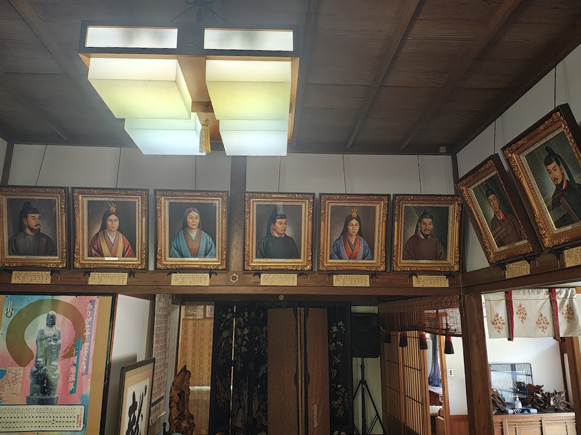 昭和の復興の際、三條妙節師は、龍門寺開祖義渕僧正が幼少の頃天智天皇に養育された故事をしのび、歴代天皇のご供養を決意し、肖像画の第一人者であり、大日本肖像美術協会総長をつとめる馬堀法眼喜好画伯に揮毫を要請しました。そして、馬堀画伯より、神武天皇より百二十四代の御真影が寄贈されました。