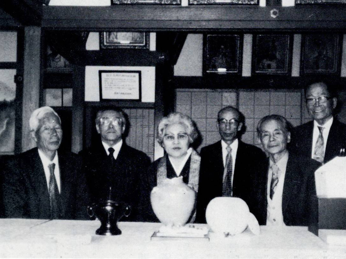 さらに昭和58年3月3日には、解体補強工事中の五輪塔から骨壺が出土、青磁の四耳壷には火葬した40歳から50歳位と推定されるお骨が発見されました。そして4月、お骨は中川善教師寄進の壷に入替えて元の位置に、舎利は水谷醒洋師製作寄進の容器に入替えて五輪塔水輪に埋葬されました。